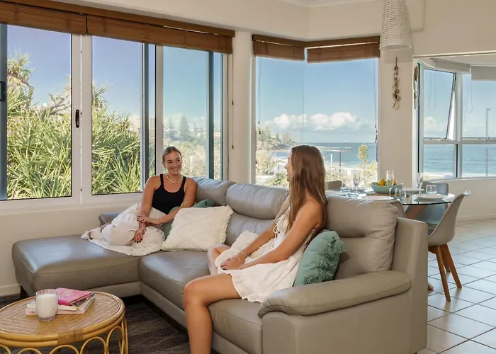 The spacious 100 m² Oceanfront Views At Rolling Surf Resort Caloundra includes a patio and is situated only 7 minutes on foot from the Caloundra Coastal Walk. The Currimundi Lake Conservation Park is 4.2 km away, while the Australian Queensland Air Aircraft Museum is 3.1 km from the 2-bedroom apartment.